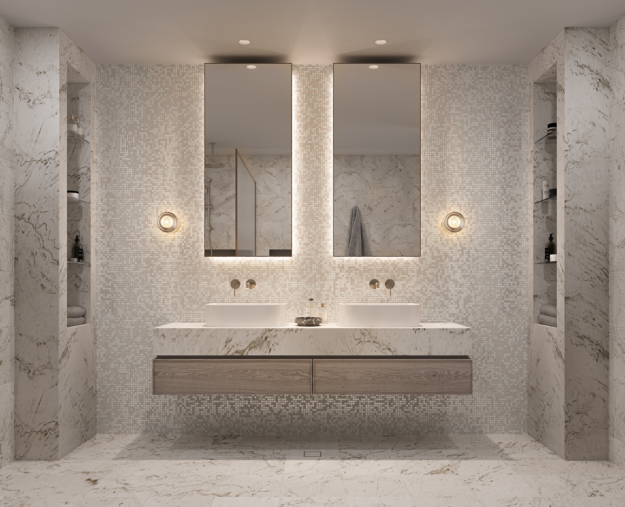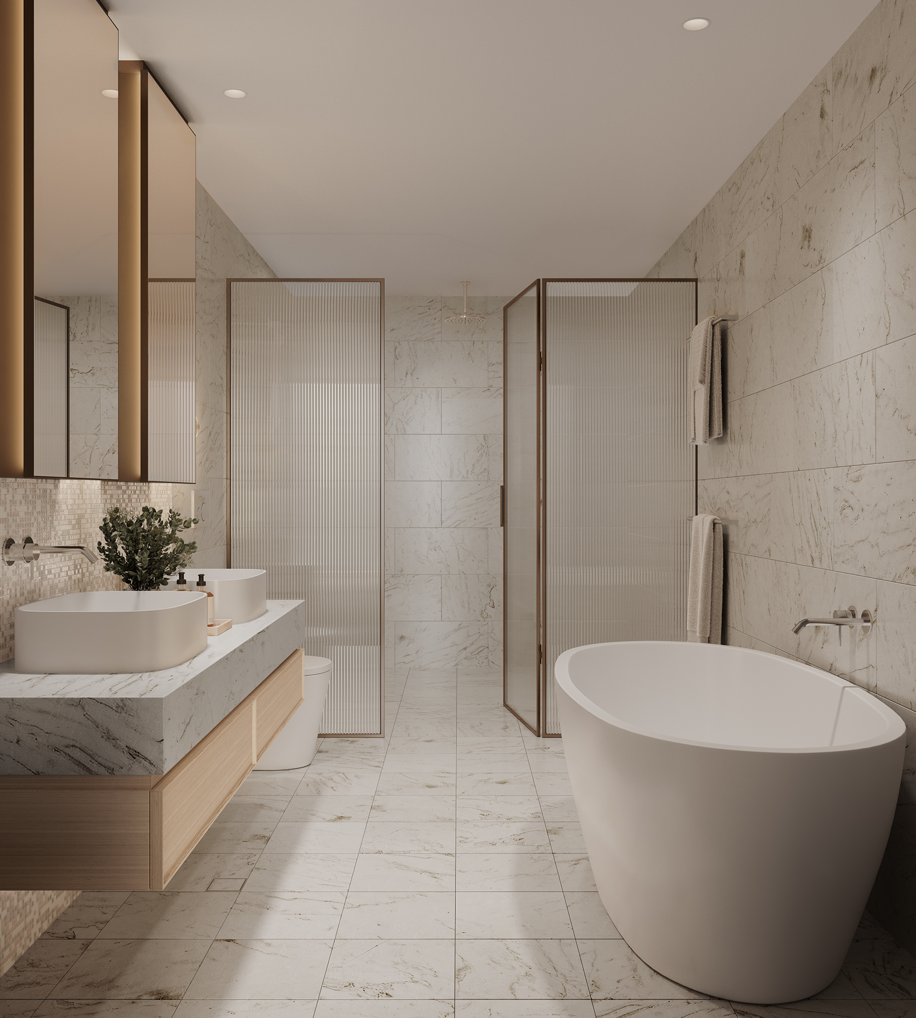• Designer bathrooms with full-height tiling & frameless glass showers