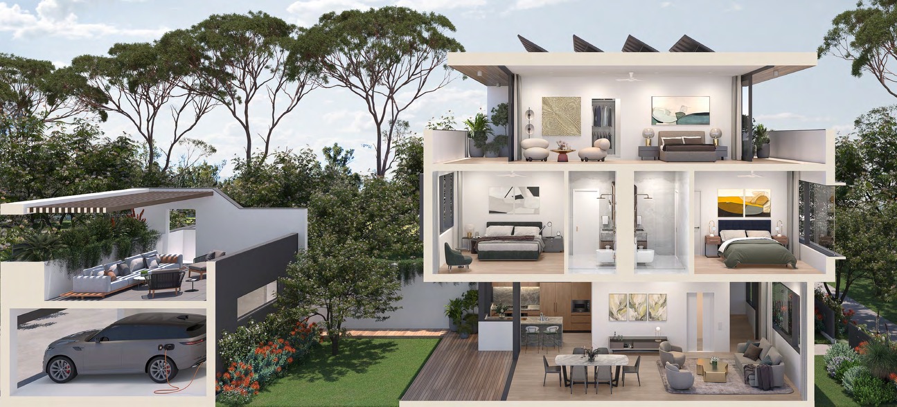 - Spacious indoor & outdoor living: Private front and back yards + rooftop/terrace / outdoor entertaining space; some homes claim up to ~150 m² of outdoor-living space on top of internal area.