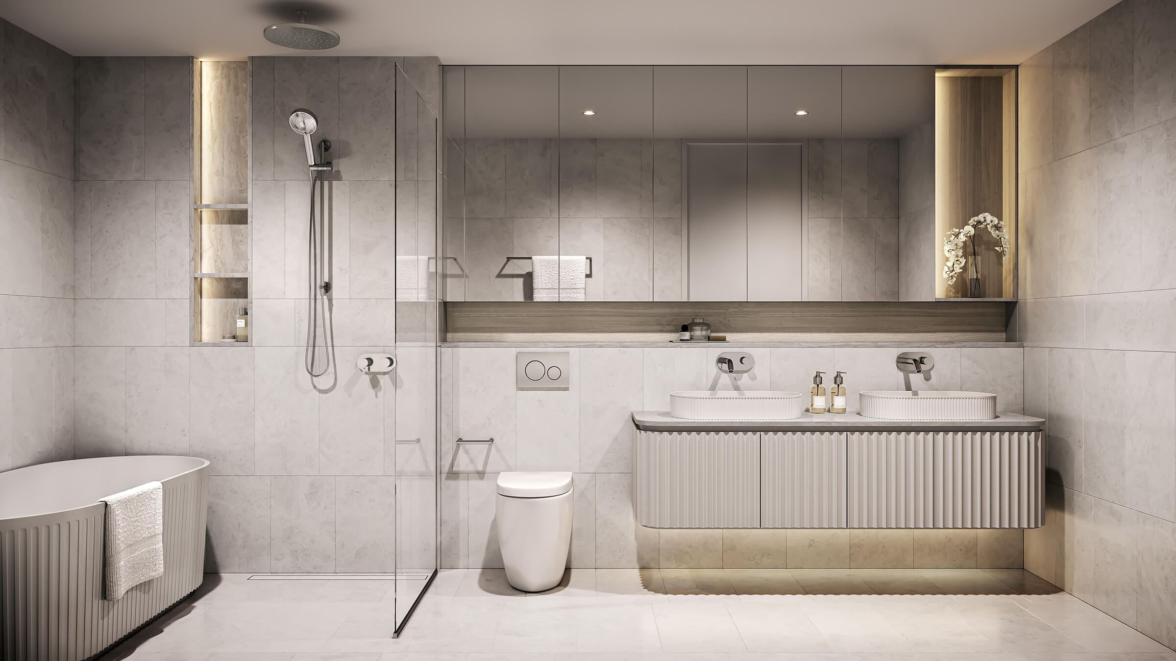 - Beautifully appointed bathrooms with sleek tiling, feature lighting and elegant fixtures