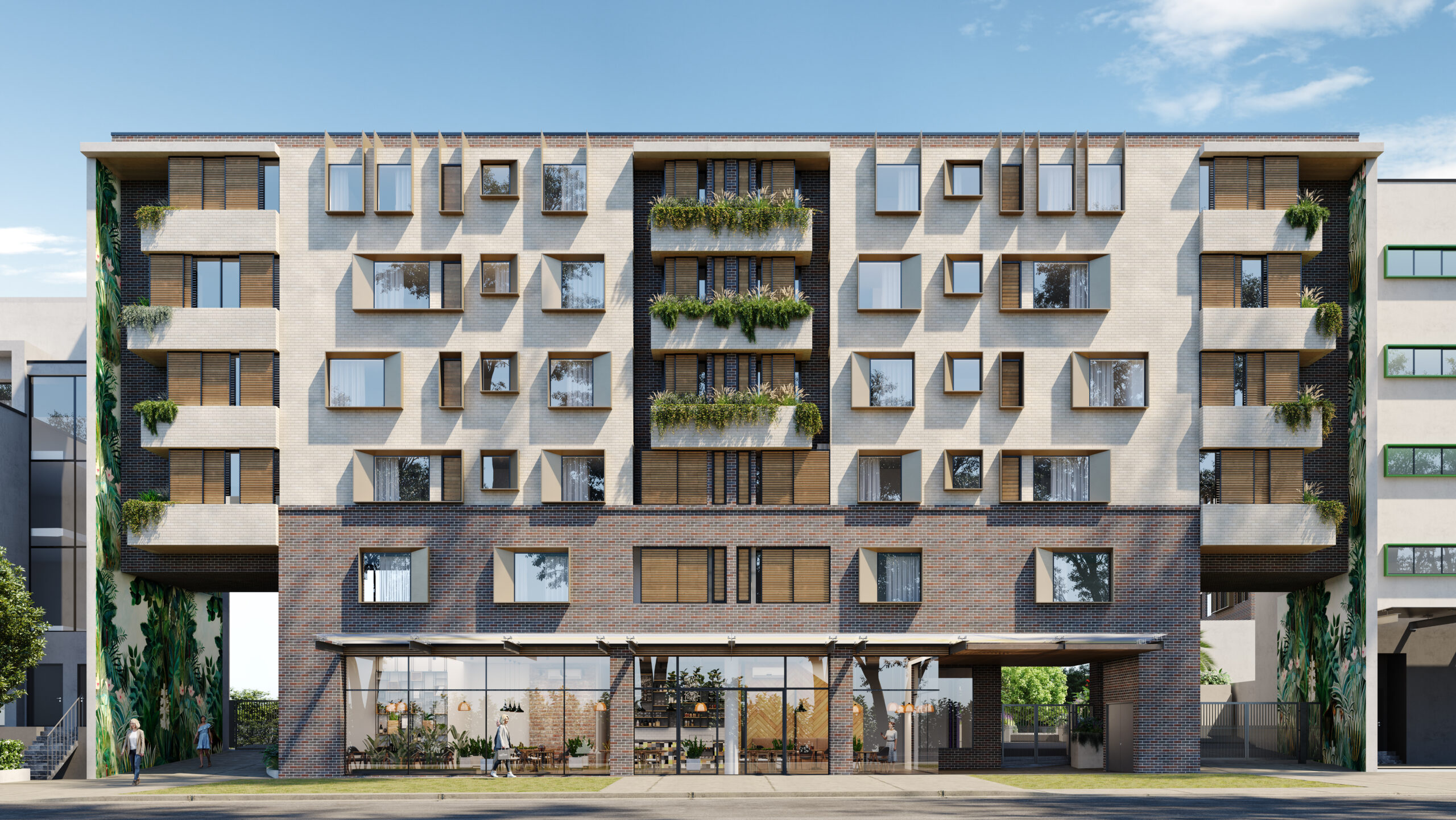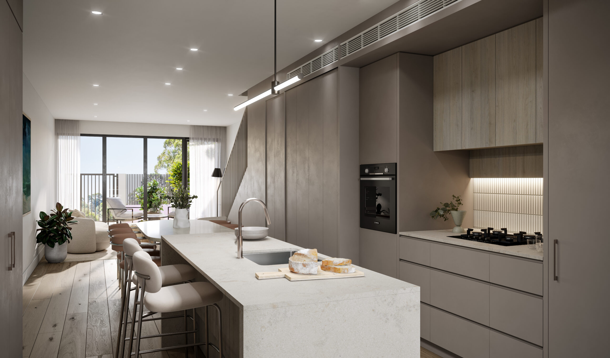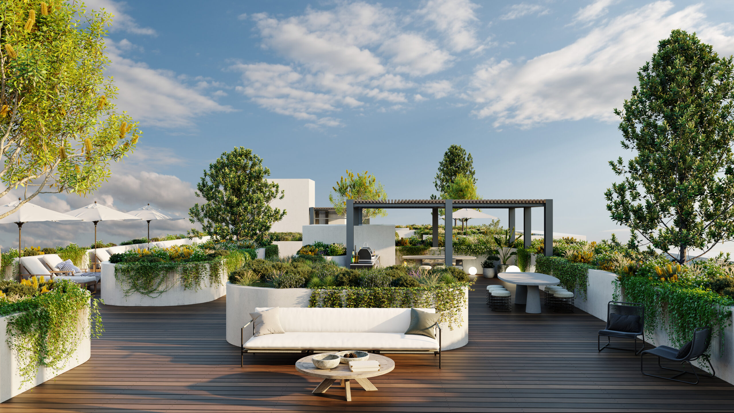 A warm white facade meets natural wooden touches and a dash of greenery for the cosmopolitan city dweller’s ultimate block of apartments in Waterloo. This popular inner-city suburb draws you in with its hip bars, trendy cafes and lively local pubs.